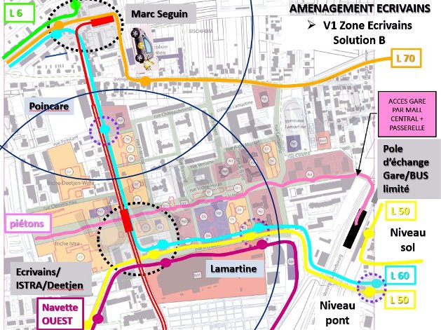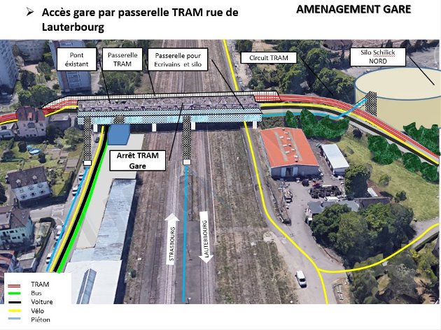 Accès gare par passerelle (ou tunnel) rue d'Erstein